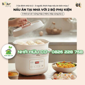 Nồi Nấu Chậm Bear 1,6L Đa Năng 6 Chế Độ Ninh Nấu Hầm Hấp – SB-NNC16