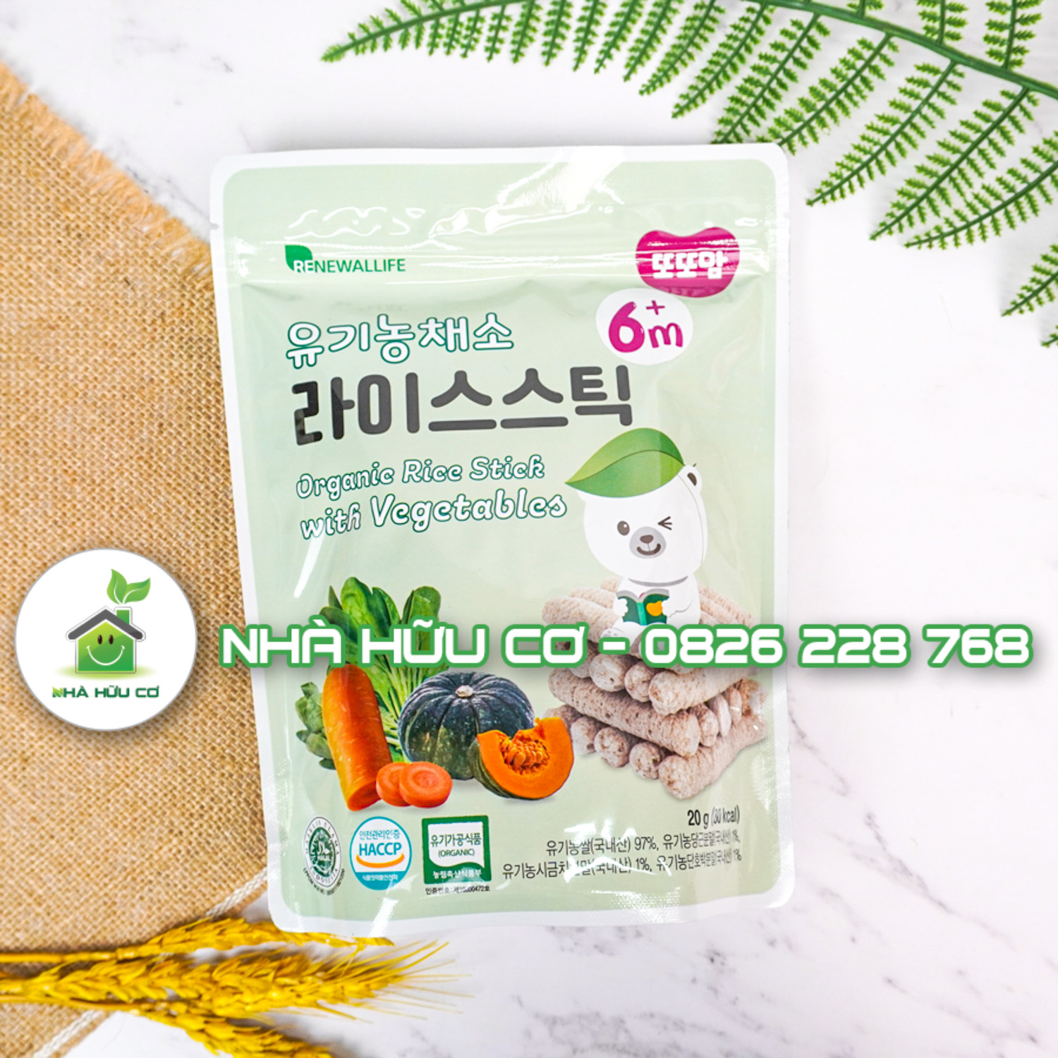 *** Bánh gạo hữu cơ hình que VỊ RAU CỦ Ddoddomam 20g