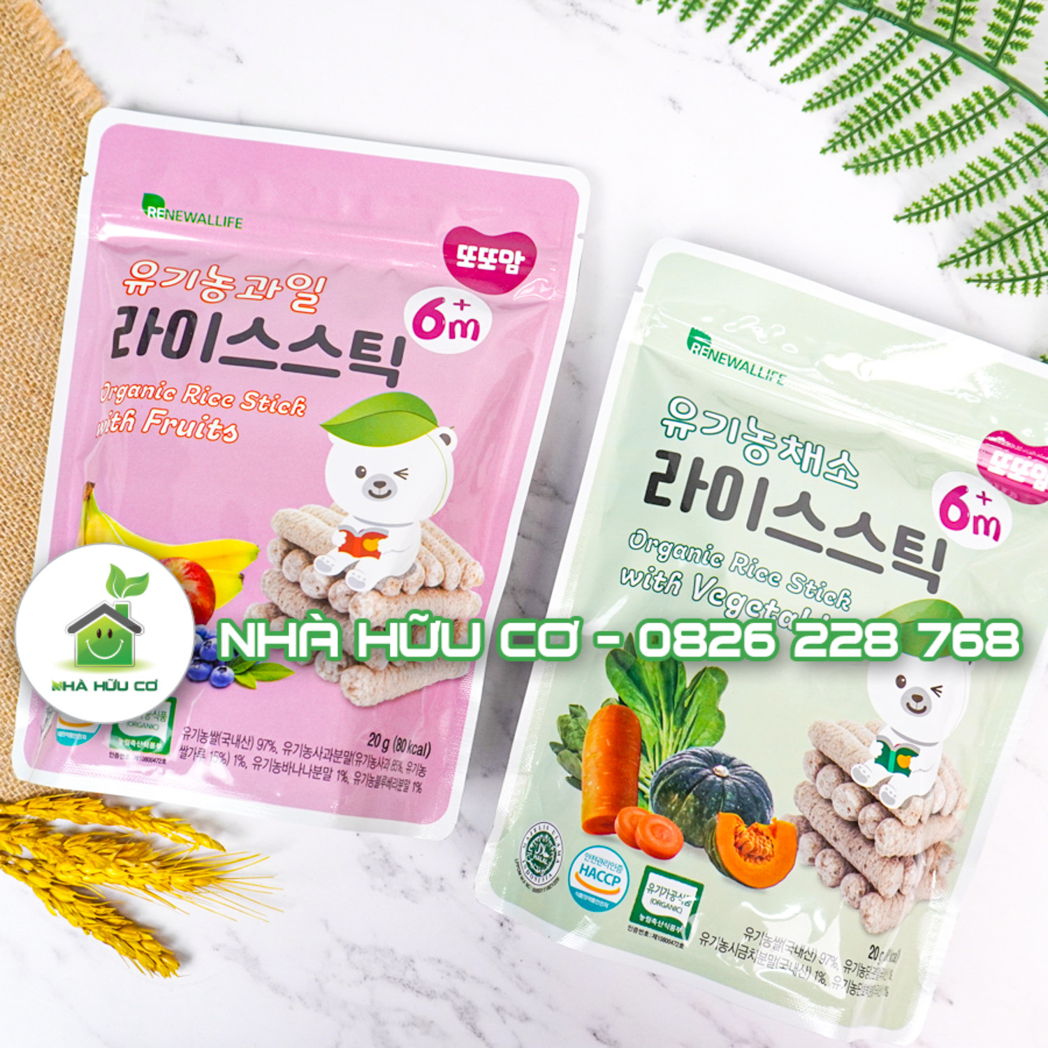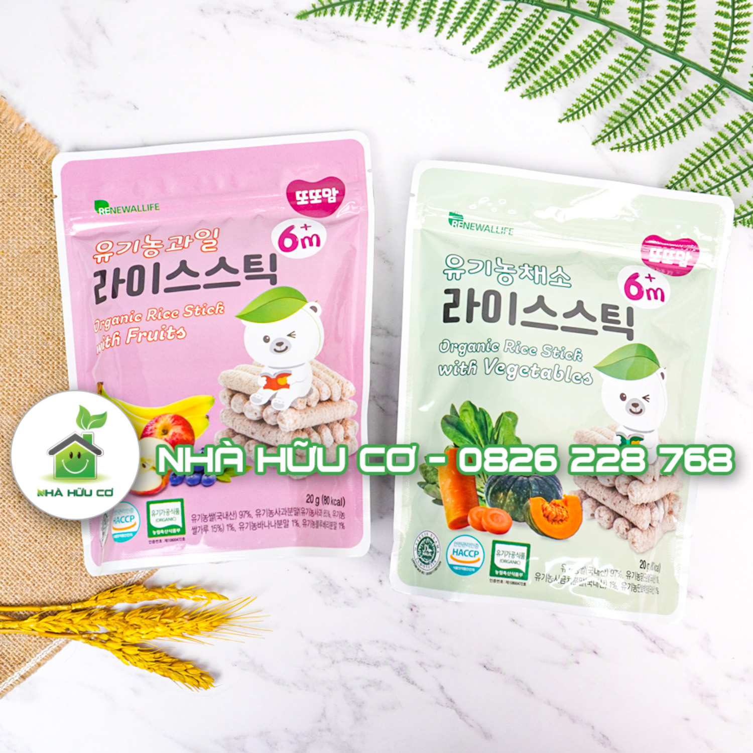 Thành phần: Gạo hữu cơ Hàn Quốc (97%), bột cà rốt hữu cơ (1%), bột rau bó xôi (1%), bột bí đỏ (1%)