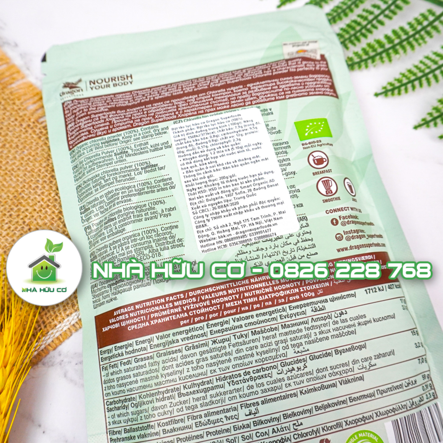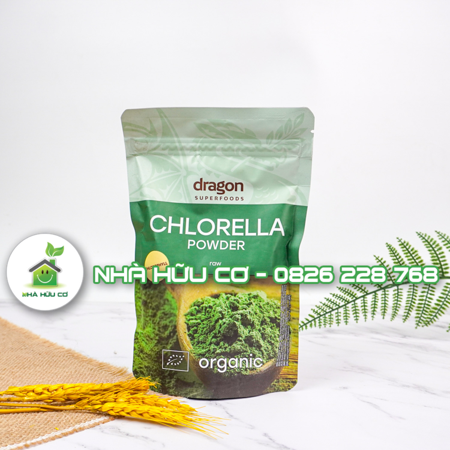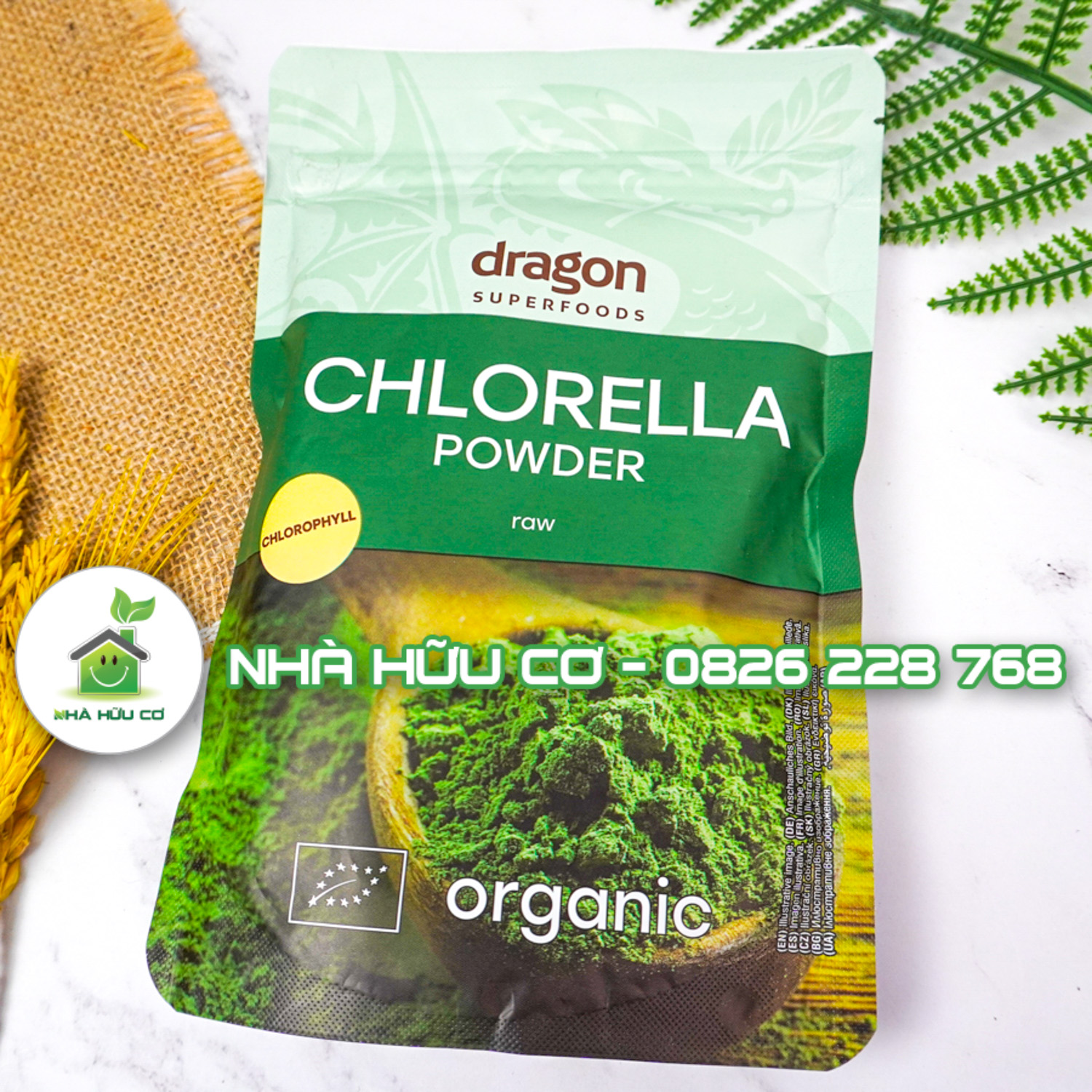 Tảo Chlorella (bột tảo lục) đã được sấy khô và tán bột có màu xanh đậm đặc trưng do sắc tố diệp lục, có một hương vị và mùi thơm đặc biệt. Bột tảo lục của Dragon Superfoods hoàn toàn phù hợp với sử dụng cùng sinh tố xanh hàng ngày của bạn.. Loại tảo nước ngọt này được chế biến thành dạng bột và được lấy từ loại tảo được chứng nhận chất lượng. Tên và màu xanh đậm đến từ chất diệp lục – một chất tạo màu tự nhiên. Sản phẩm có hàm lượng chất xơ và protein thực vật rất cao.
