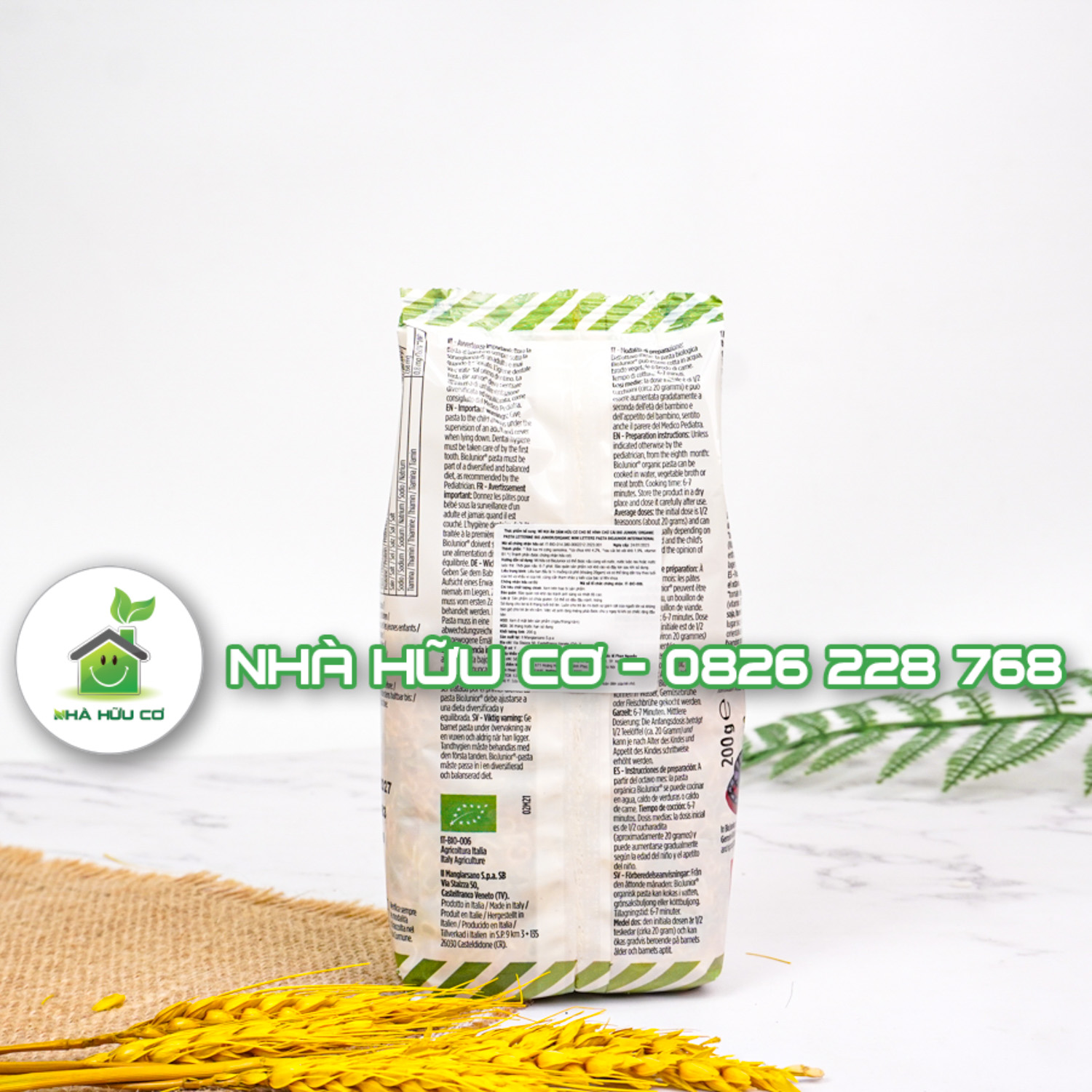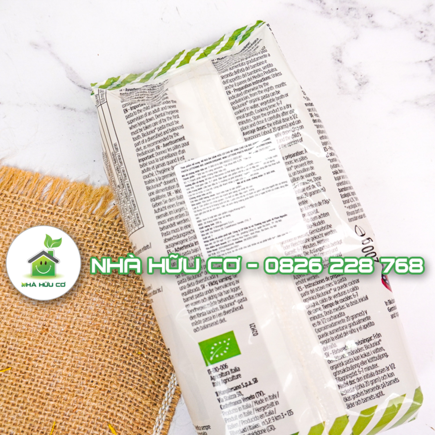 Thành phần: *Bột lúa mì cứng semolina, *cà chua khô 4,2%, *rau cải bó xôi khô 1,9%, vitamin B1. *Thành phần hữu cơ