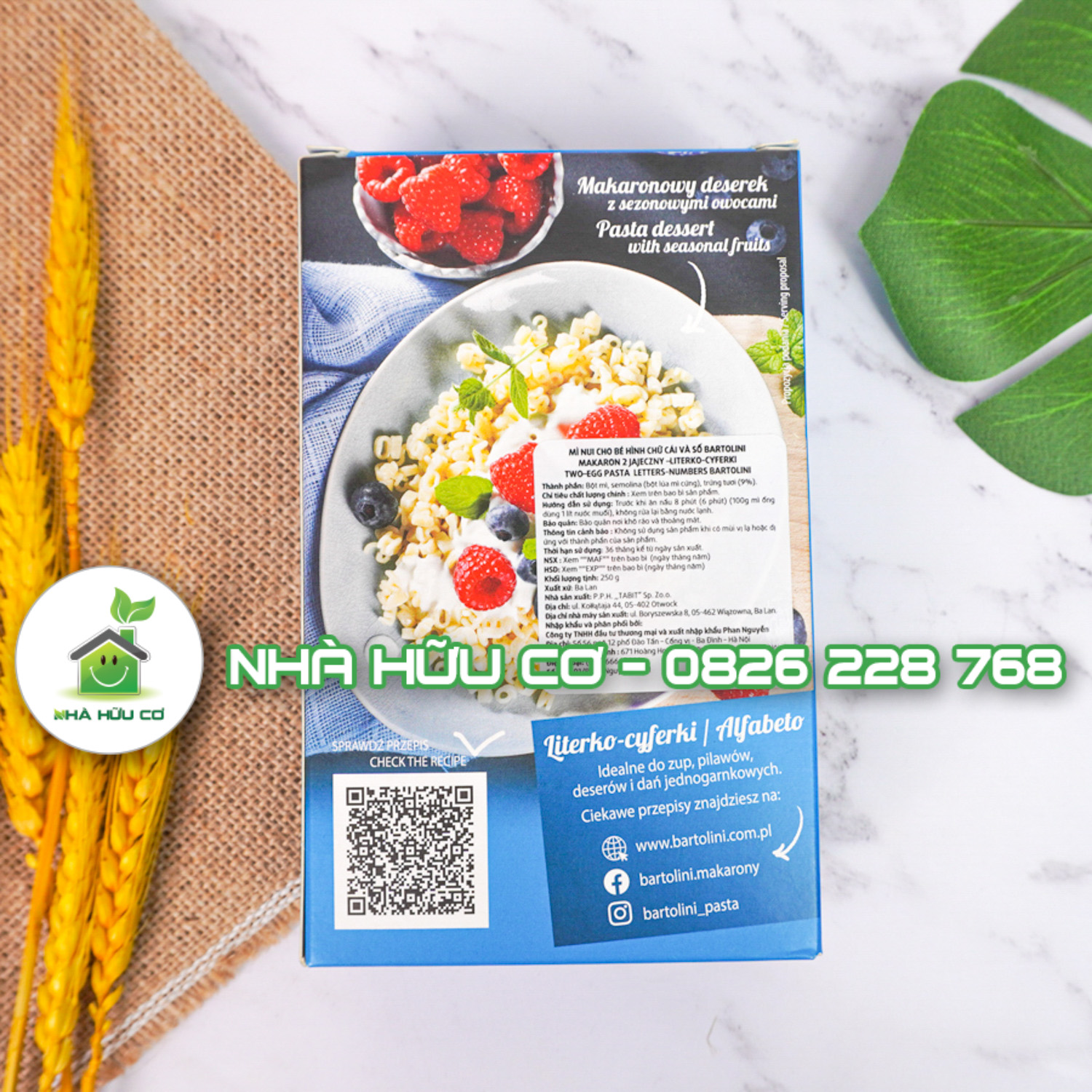 Mì nui cho bé hình chữ cái và số Bartolini 250g