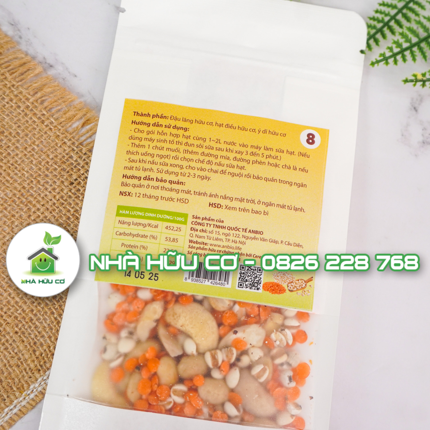 Thành phần: Đậu lăng hữu cơ, hạt điều hữu cơ, ý dĩ hữu cơ