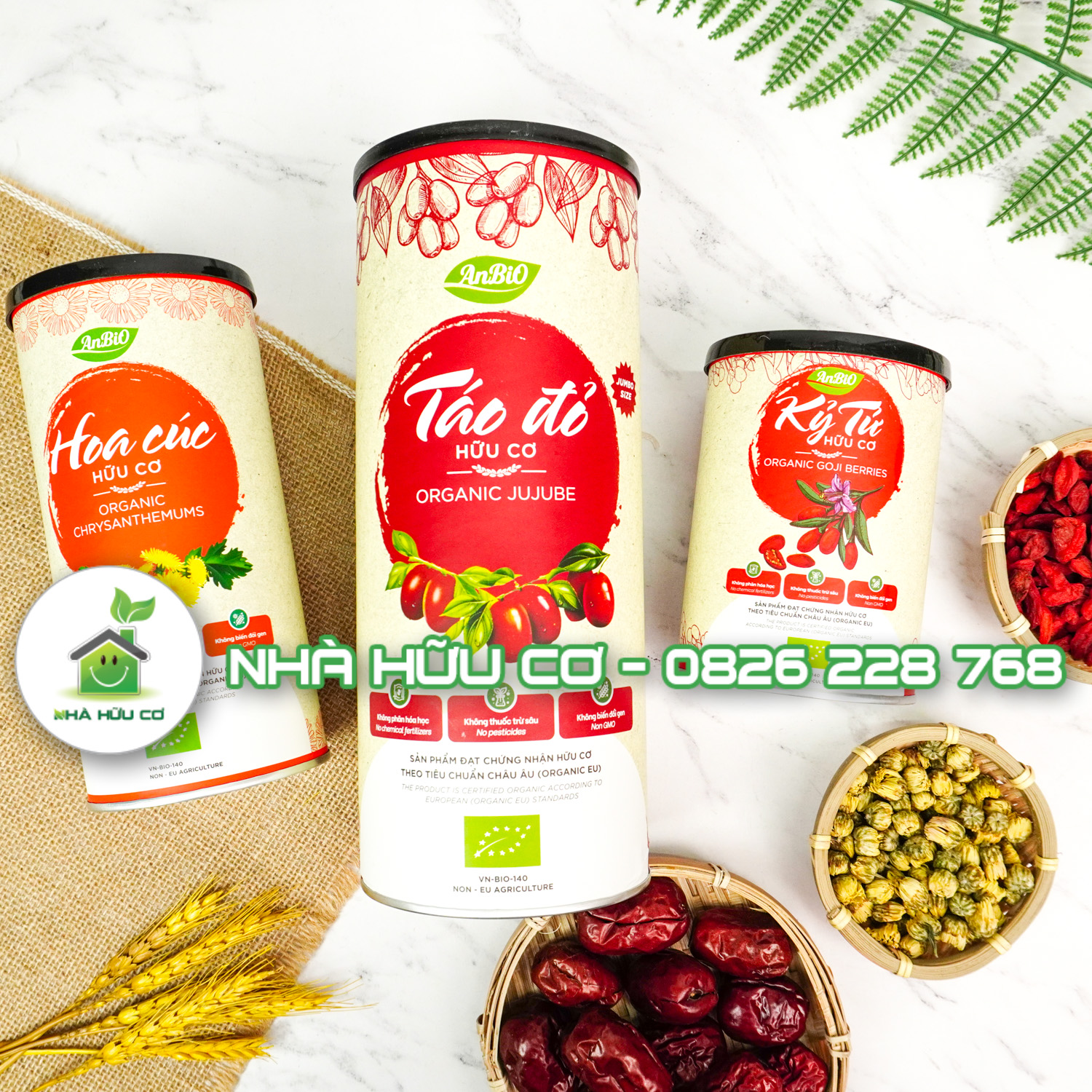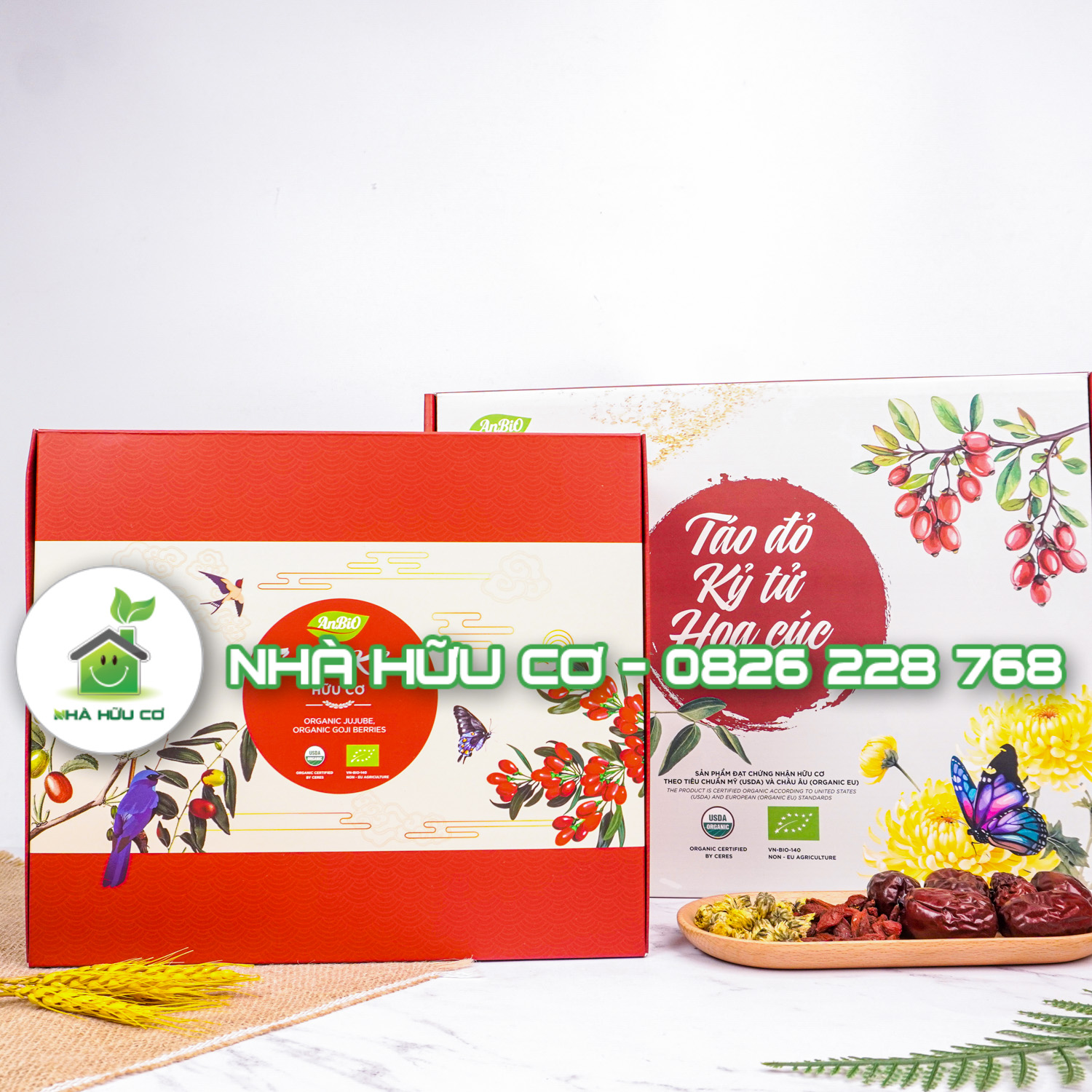 | Loại sản phẩm | BỘ QUÀ TẶNG TÁO ĐỎ + KỶ TỬ, BỘ QUÀ TẶNG TÁO ĐỎ+KỲ TỬ+ HOA CÚC, HOA CÚC HỮU CƠ 50G, KỶ TỬ HỮU CƠ 200G, TÁO ĐỎ HỮU CƠ 450G |